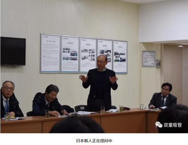 被提問的員工也闡述了自己的看法:“‘雙童’的工作環(huán)境、福利待遇很好,鼓勵員工在公司內(nèi)部結(jié)婚成家、養(yǎng)育小兒、就學(xué)安居,形成‘家文化’氛圍,最大程度上解決了我們的后顧之憂!最嚴(yán)格的是公司的規(guī)章制度和對產(chǎn)品質(zhì)量的重視程度,不斷影響我們的內(nèi)心做出優(yōu)質(zhì)的產(chǎn)品……” 員工們的回答也引起了日本客人們的陣陣掌聲!