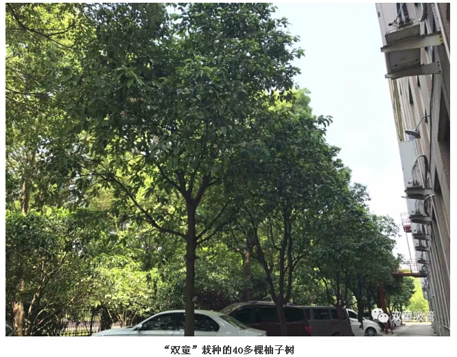 原來,為了“雙童”的生態(tài)和美觀,公司明確柚子是觀賞性水果,每棵柚子樹上都有“觀賞水果,請勿摘食”的字樣,提醒和引導(dǎo)員工不要摘食觀賞水果。