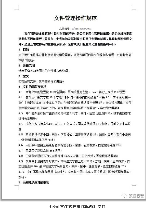 通過這份文件,我們統(tǒng)一了企業(yè)文件的編寫要求,從而明確指導各部門在形成、修訂、補充和更新文件時的統(tǒng)一規(guī)范!換句話說,無論是“雙童”多少位科室員工寫的文件,打開一看都像是一個人寫的文件!