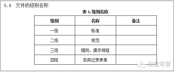 第三層次文件:管理細則、操作規(guī)程、技術標準等作為各部門運行管理活動的常用實施細則:包括管理標準、操作流程、技術標準(國家標準、行業(yè)標準、企業(yè)標準及作業(yè)指導書)等;