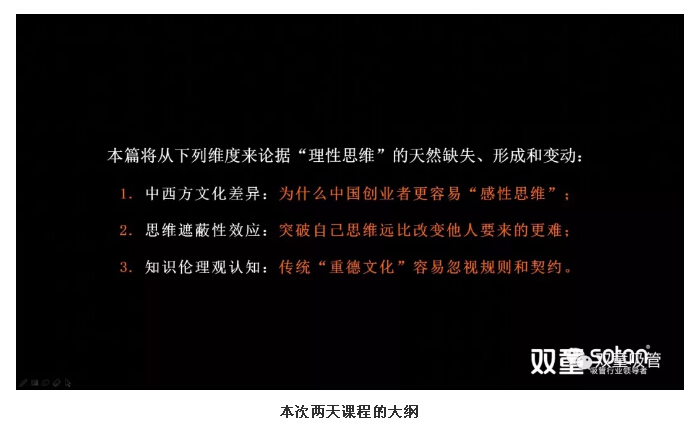 5月29日晚7:00,“雙童”第230期學(xué)習(xí)會(huì)在九樓閣正式開(kāi)講!本次課程由樓仲平帶來(lái)他今年的最新課程《淺談“理性創(chuàng)業(yè)思維”》!要說(shuō)這堂課,可是“重量級(jí)”,光是這個(gè)月都已經(jīng)在浙大講過(guò)好幾回,并引發(fā)了聽(tīng)課學(xué)員的一致好評(píng)!在內(nèi)部員工的強(qiáng)烈呼聲下,樓仲平也決定在連續(xù)兩天的時(shí)間里,將這堂課進(jìn)行針對(duì)性的講授,同時(shí)開(kāi)放外部聽(tīng)課名額,引導(dǎo)大家共同認(rèn)知“理性思維”!