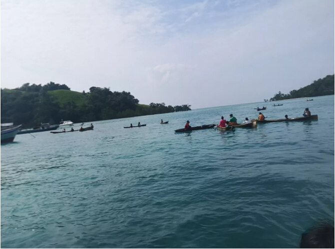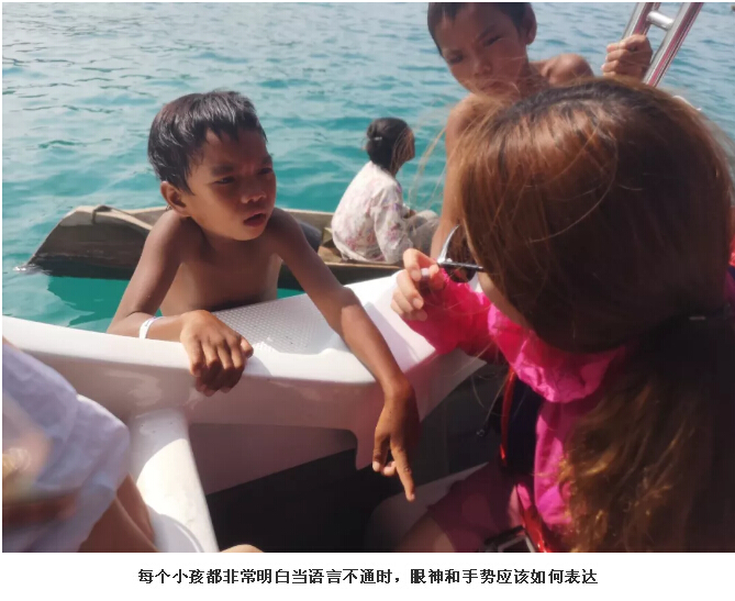 當(dāng)我們的快艇一放慢速度,我們就發(fā)現(xiàn)許多小船便快速朝著我們前進(jìn),說實(shí)話心里還是很恐慌的。當(dāng)船慢慢靠近了以后發(fā)現(xiàn),船上基本上是老人、婦人,最多的是小孩,他們曬得黝黑黝黑的,女孩子臉上還涂著黃白色的泥巴,睜著大大的眼睛,不斷地用目光搜尋你身上有沒有他們想要的食物。一旦發(fā)現(xiàn),就賴著你,用央求的眼神可憐巴巴地指著食物,希望你可以把食物分享給他們。我們翻遍了包包,只找到一罐口香糖。姐姐拿出一顆想給一個小女孩,那個小女孩竟然搖搖頭,指著那個罐子表示她想要一罐??紤]到不確定他們能夠明白口香糖是要吐掉的,我們就拒絕了她的要求。小女孩也不生氣,央求了一段時間后,便轉(zhuǎn)移目標(biāo),指了指姐姐頭上戴著的花,想讓我們把花也給她。這怎么行,我們也只有一朵,還是買泳衣的時候送的,后續(xù)大家可以看到這朵花不斷地出現(xiàn)在我和姐姐的頭上,發(fā)揮了卓越的裝飾作用……捂臉。