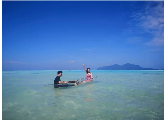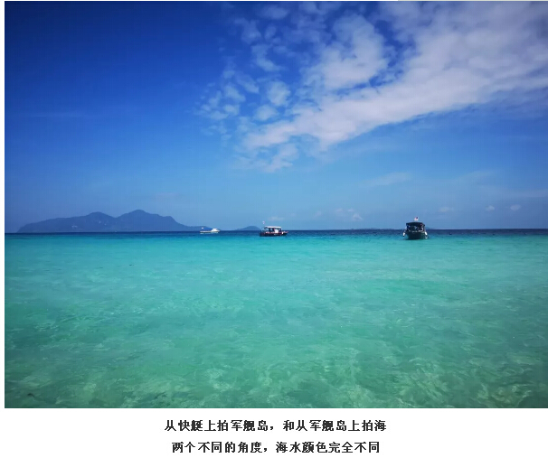 終于說到第四個島,也是我們一致認(rèn)為四個島里最美的海島——軍艦島。這個島很小,以像一艘軍艦而得名,沙子又白又軟又細(xì),海水也非常清澈。小黑哥給我們準(zhǔn)備了玻璃船和大型水上玩具,我們盡情玩鬧,拍下了旅程中最美的海島照片。