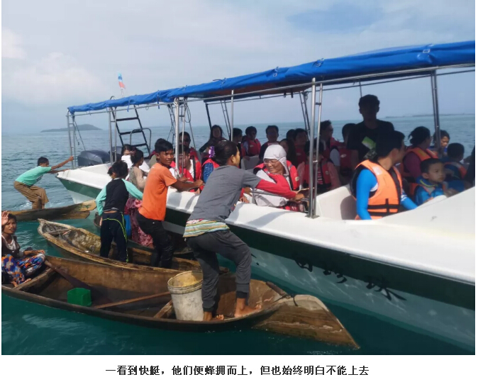 很快,我們到了第一個島——波德加亞島。負(fù)責(zé)介紹的“小黑”告訴我們,我們不需要上第一個島,主要是帶我們來看看世界上唯一一個沒有國籍的民族——巴瑤族。