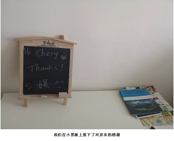 搭乘晚上的飛機(jī)回到亞庇,我們提前一天在愛彼迎上訂好了套房。下面必須安利一波我們在亞庇住的套房!這個Lazy.Elephant套房,它位于哥打京那巴魯市,是中央商務(wù)區(qū)天空套房。它不僅有兩扇大大落地窗可以觀賞城市景觀和絕美日落,還能共享sky hotel的INFINITY游泳池,健身房和天空休息室!有這樣的套房,可以提供六人居住,一晚只要500左右人民幣,太適合家庭或者組團(tuán)居住了!房東Chery人超好,因為我們到亞庇已經(jīng)十一點(diǎn)多了,她怕我們找不到地方,把每一個需要拐彎和注意的地方都用照片拍下來標(biāo)注好箭頭,提醒我們應(yīng)該怎么走。到達(dá)房間后,能夠看到她在客廳小黑板上寫了歡迎詞,貼心的寫了姐姐的中文字“媛”,讓人一進(jìn)門就感覺特別溫暖。