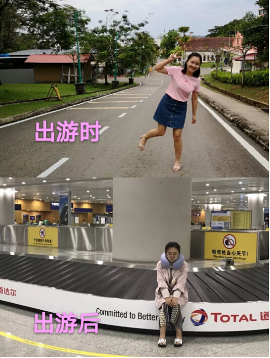 PS:最后說一個小插曲,可能是冷熱交錯,或者吃錯了什么東西,我是一路從亞庇機(jī)場肚子痛回了上海,再加上到達(dá)上海已經(jīng)是凌晨四點(diǎn),整個人都虛到不行。在上海機(jī)場呆等行李時,姐姐竟然偷偷拍了一張我的照片,后面發(fā)給我時我自己都笑慘了。下面請欣賞一張本人“出游時”和“出游后”的對比照片: