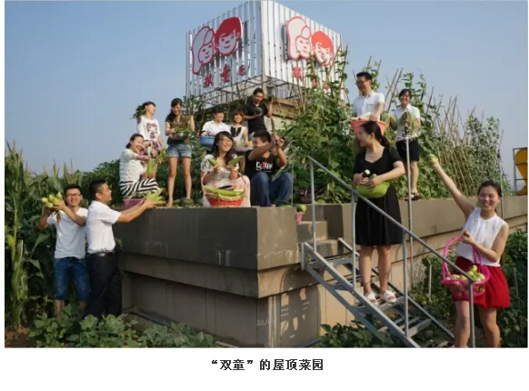 屋頂綠化系統(tǒng):“雙童”屋頂菜園的每個種植區(qū)的土層均有1點2米深,在有效提升廠區(qū)景觀環(huán)境外,降低了室內(nèi)溫度,保護(hù)了屋頂建筑,極大地改善了工廠的區(qū)域生態(tài)環(huán)境,每年為企業(yè)節(jié)省能耗電費二三十萬元!