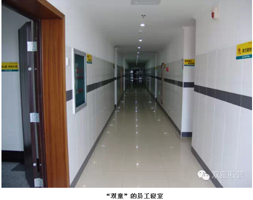 走進(jìn)“雙童”廠區(qū),第一印象是環(huán)境很整潔、衛(wèi)生。在員工宿舍區(qū),裝修了十多年的白墻有些泛黃,卻找不出一個(gè)手印或鞋印。這是為什么?樓道口的一塊標(biāo)語(yǔ)牌似乎道出了答案:環(huán)境好,是因?yàn)橛心?/span>