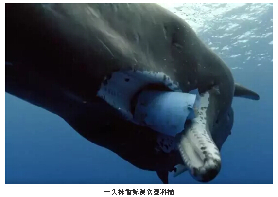 在一期中出現(xiàn)了這樣令人心碎的一幕。一頭抹香鯨把一個塑料桶誤認為是食物一點點吞進了嘴里,而這很可能導致它被卡住無法進食。