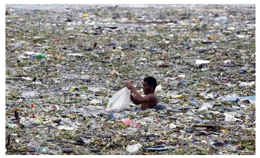 ▲一名男子在菲律賓馬尼拉馬尼拉灣收集塑料和其他可回收材料。