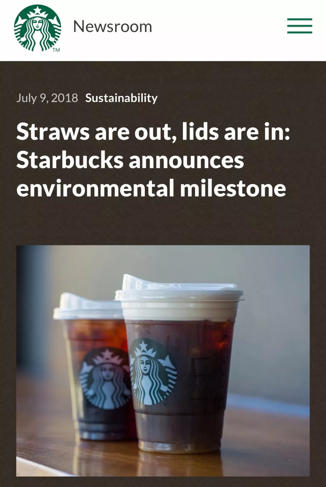 除此之外,星巴克在7月9日也宣布,