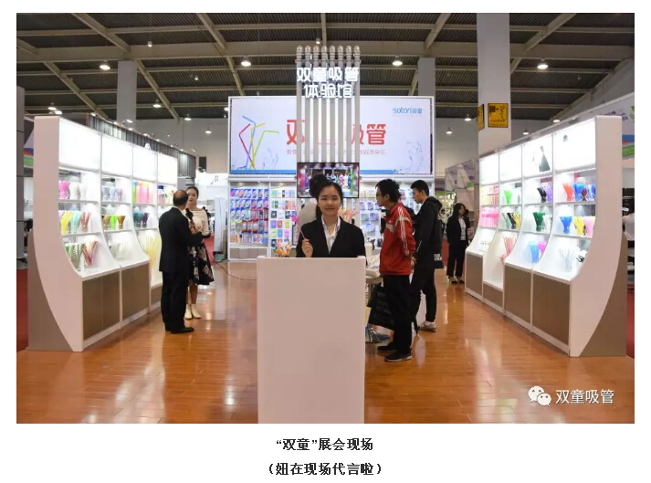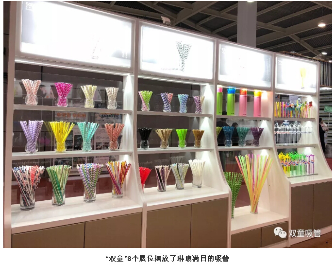 與以往不同的是,今年的“雙童”展區(qū)展示著眾多可降解吸管,他們成為了展會“明星”,吸引了大批新老客戶駐足采購。