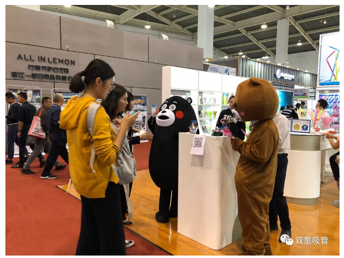 在網(wǎng)紅熊帶領下,“掃一掃送創(chuàng)新吸管”的活動讓來往的客商們“欲罷不能”,現(xiàn)場十分火爆哦!別急別急!一個個來,妞可是準備了很多呢!