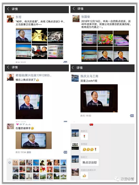 12月16日晚,中央電視臺《焦點訪談》節(jié)目播出了改革開放40周年專題節(jié)目,聚焦義烏“雞毛換糖”精神,全面展示義烏的發(fā)展和文化。作為末代貨郎的樓仲平也再次登上《焦點訪談》節(jié)目,在本期節(jié)目中分享了改革開放40周年自己的創(chuàng)業(yè)歷程!
