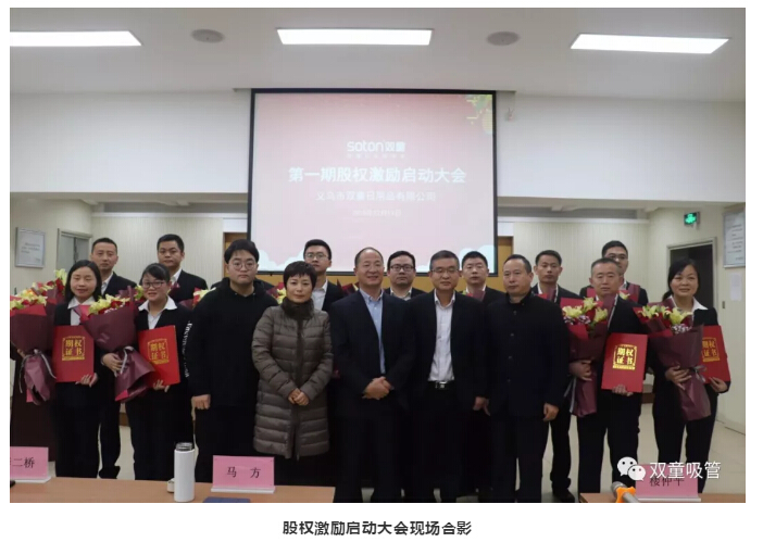 2018年12月19日,對(duì)“雙童”來說,是代表著夢(mèng)想、激情、奮斗的一天!在這一天,雙童吸管第一期股權(quán)激勵(lì)啟動(dòng)大會(huì)在“雙童”九樓閣隆重舉行!“雙童”首批12位核心員工將成為“雙童”的經(jīng)營(yíng)伙伴,一起互相陪伴,走向未來!