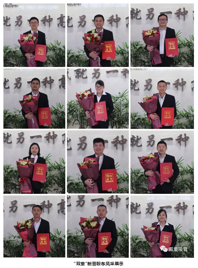 經(jīng)過(guò)八年的探索,經(jīng)過(guò)泰山管理學(xué)院對(duì)“雙童”股權(quán)激勵(lì)工作的支持和指導(dǎo),2018年12月19日,雙童吸管第一期股權(quán)激勵(lì)啟動(dòng)大會(huì)隆重舉行!“雙童”首批12位核心員工真正成為企業(yè)合伙人!