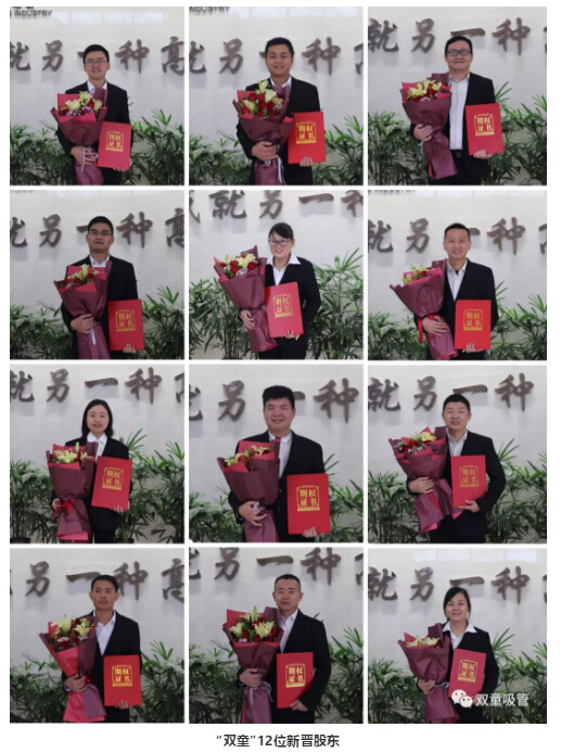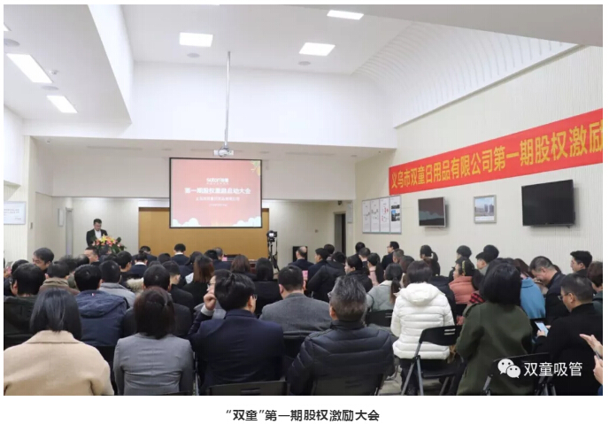 12月19日,對“雙童”來說,是代表著夢想、激情、奮斗的一天!在這一天,雙童吸管第一期股權激勵啟動大會在“雙童”九樓閣隆重舉行!“雙童”首批12位核心員工成為了“雙童”的經營伙伴,一起互相陪伴,走向未來!