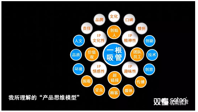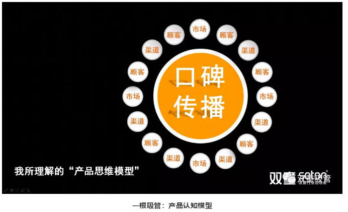 讓員工們自身對“產(chǎn)品”和“商品”有所思考之后,樓仲平以“一根吸管”為例,詮釋了全新思維的“產(chǎn)品認(rèn)知模型”:
