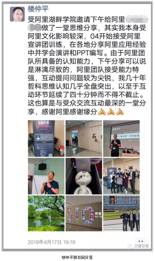 在提前一個月預約樓仲平課程的過程中,阿里巴巴方也希望樓仲平講一些能夠促進內(nèi)外思維碰撞的課程,這也正好與樓仲平近年來的課程主題十分吻合。因此,對于再次和阿里巴巴結緣,樓仲平也在朋友圈里感慨到:感謝阿里感謝緣分!