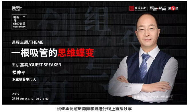 5月8日,“雙童”樓仲平受邀在格局商學(xué)最核心的板塊《思想的格局2019》,以全新的線(xiàn)上課程直播的形式分享《一根吸管的思維蝶變》,引導(dǎo)大家突破表象認(rèn)知,理解底層邏輯,用互聯(lián)網(wǎng)的思維去理解產(chǎn)品,并在線(xiàn)與萬(wàn)名學(xué)員進(jìn)行即時(shí)互動(dòng)與反饋!