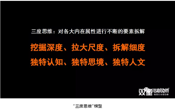 產(chǎn)品要轉(zhuǎn)化成商品就需要讓產(chǎn)品擁有精神屬性、文化屬性等,因此,“雙童”通過(guò)“三度思維”對(duì)各大內(nèi)在屬性進(jìn)行不斷的要素拆解。