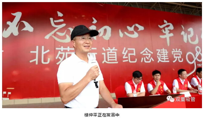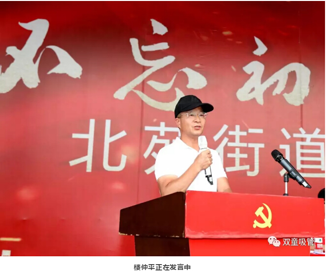 這不,6月29日上午,北苑街道為紀(jì)念中國(guó)共產(chǎn)黨成立98周年,開展了建黨98周年慶“七一”專題千人大黨課?!半p童”樓仲平也受邀參加了此次活動(dòng),并受聘擔(dān)任了垃圾分類宣傳大使!