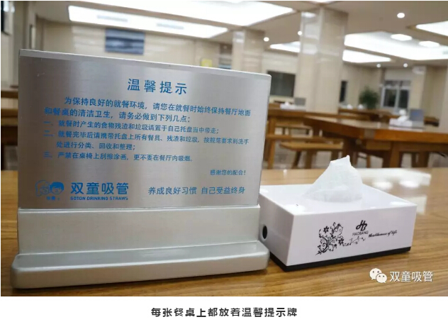 4.“雙童”大部分濕垃圾(餐廚垃圾)在餐廳的源頭給予分類,通過教育培訓(xùn)并在每張餐桌上都擺放著垃圾分類的標(biāo)語(yǔ)提示牌,提醒員工們就餐后及時(shí)按食物垃圾、衛(wèi)生紙、包裝物三種類別分類投放于洗碗出三個(gè)大桶中,其中的包裝物和紙張垃圾作為資源類垃圾回收、食物垃圾供應(yīng)給養(yǎng)殖戶作飼料回收,從而把企業(yè)所有的濕垃圾全部消滅;