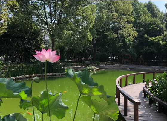 景觀湖上荷花綻放,景觀湖下暗藏中水儲存池。在這個荷花盛開的季節(jié),每位員工都可以體驗(yàn)到“一步一景”的美妙,感覺到美好環(huán)境帶來的愉悅,真是妙哉!