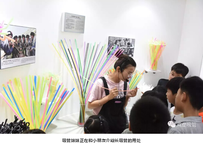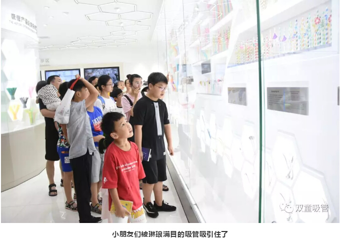 進(jìn)入吸管博物館后,吸管妹妹給小朋友們介紹了可彎曲吸管的制作過(guò)程,長(zhǎng)吸管的用處,這也引起了小朋友們滿滿的好奇心,紛紛緊跟吸管妹妹的身后,認(rèn)真的聆聽(tīng)介紹。