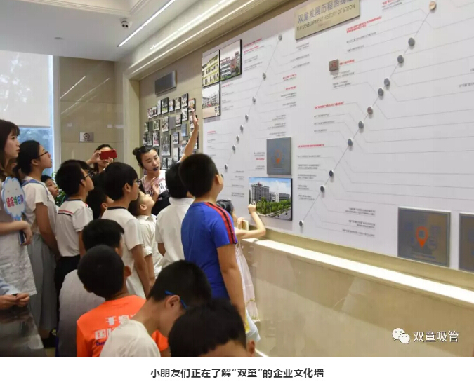 參觀完博物館后,大家接著參觀了“雙童”員工餐廳和企業(yè)文化墻。小朋友們一如既往地緊跟吸管妹妹身后,深怕自己錯(cuò)過(guò)什么“秘密”。
