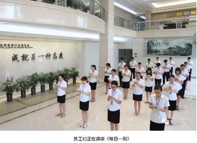首先,就是晨讀環(huán)節(jié)。“雙童”所有員工在上班之前都會(huì)在統(tǒng)一時(shí)間誦讀“雙童”的企業(yè)文化叢書——《每日一則》。