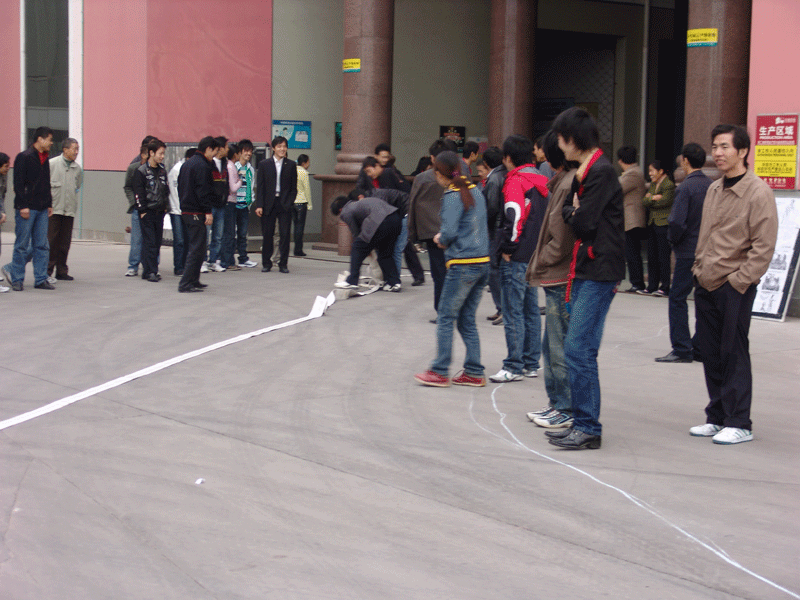 上圖為員工使用水進(jìn)行滅火比賽現(xiàn)場(chǎng)