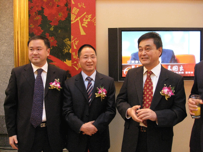上圖為樓總和英科控股總裁劉方毅(圖左)、東方希望集團(tuán)總裁劉永行(圖右)合影