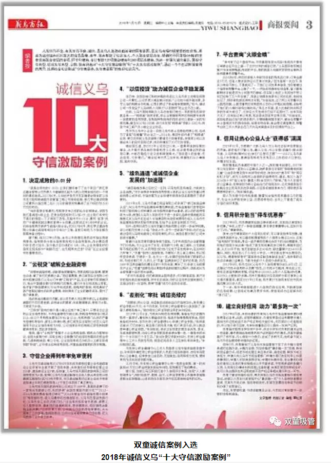 “雙童”也是如此,在經(jīng)營(yíng)過(guò)程中,對(duì)社會(huì)、對(duì)政府、對(duì)員工誠(chéng)信、樹(shù)立誠(chéng)信并傳播誠(chéng)信,推動(dòng)企業(yè)在良好的法治環(huán)境下,誠(chéng)信經(jīng)營(yíng),健康發(fā)展!