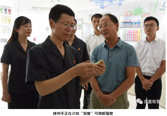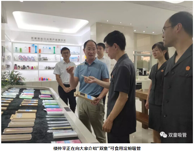 胡公益院長(zhǎng)聽(tīng)完介紹后,對(duì)這款綠色環(huán)保的可食用淀粉吸管稱贊連連。