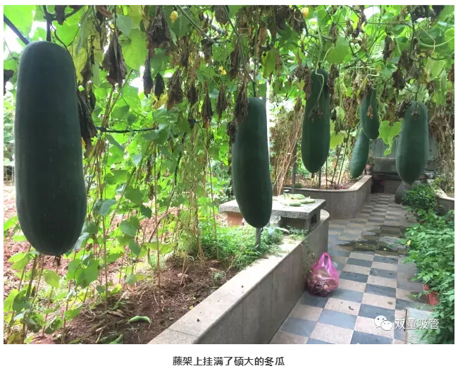 接下來(lái)給大家展示的“巨無(wú)霸”大冬瓜,可算是“空中菜園”里的重量級(jí)瓜主了!瞧瞧,這一個(gè)個(gè)大冬瓜懸掛著,妞可真擔(dān)心哪天一不小心就“呱呱落地”啦!