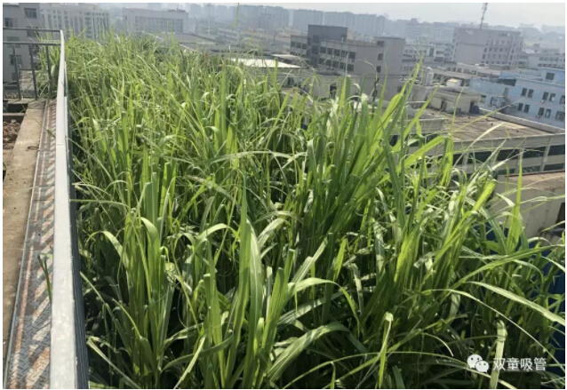 很多人會奇怪,為何空中還能種甘蔗呢?其實,我們屋頂菜園有一米二高的土層,別說甘蔗,石榴樹枇杷樹也照樣種呢!
