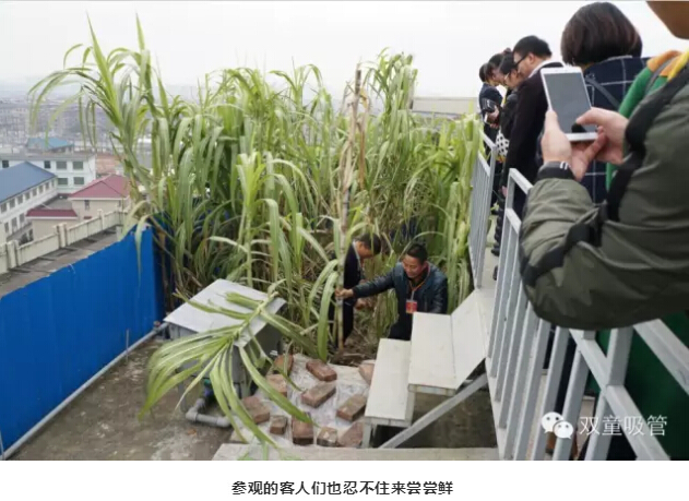 瞧!“雙童”屋頂菜園里的甘蔗也迎來了豐收季,一排排粗壯的甘蔗,紫色的枝干和清悠悠的葉子整齊劃一的在風(fēng)中搖擺,誘人極了!