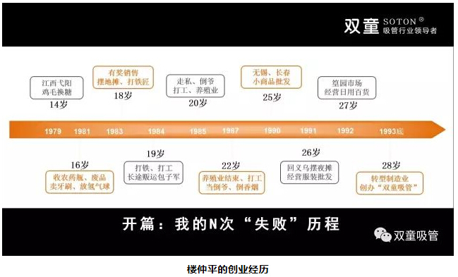 在視頻中,樓仲平生動(dòng)的講述了他對(duì)于創(chuàng)業(yè)的理解和對(duì)吸管行業(yè)的堅(jiān)守。實(shí)際上,樓仲平在初中時(shí)期就因?yàn)榧彝ヘ毨ЦS父親到江西雞毛換糖,四處漂泊,在尋找安身立命之處時(shí),同時(shí)也在外面發(fā)現(xiàn)了更為宏大的世界。在這個(gè)過(guò)程中,唯一不變的就是他對(duì)美好生活始終充滿了向往!下面,吸管妞帶大家回顧一下樓仲平的創(chuàng)業(yè)歷程:https://v.qq.com/x/page/p3014iuf3mf.html