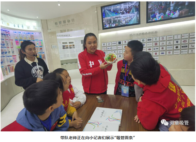 接著,吸管妹妹向小記者們介紹了吸管的發(fā)展歷史、早期的吸管生產(chǎn)技術(shù)以及各種形態(tài)的吸管的由來(lái)等!小記者們也緊跟吸管妹妹身后,耐心地聆聽講解!
