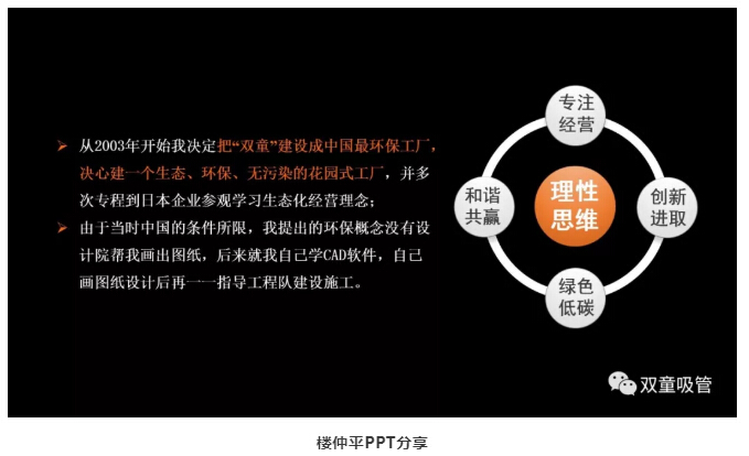 那么,早在十多年前,整個(gè)社會(huì)環(huán)境都沒有倡導(dǎo)節(jié)能環(huán)保理念的當(dāng)時(shí),樓仲平為何會(huì)選擇帶領(lǐng)企業(yè)走這條發(fā)展道路呢?下面,吸管妞就借樓仲平在浙江大學(xué)授課時(shí)的一段視頻,揭秘其中的奧秘!