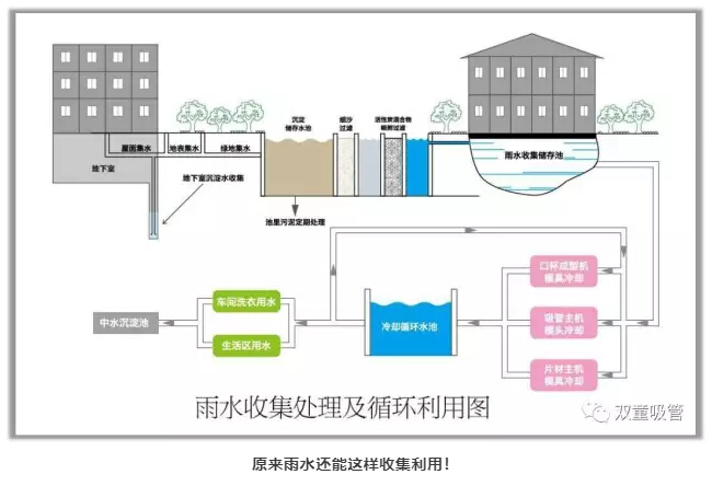“雙童”廠區(qū)內(nèi)有200多個(gè)“雨水收集坑”,和蓄水池有序連接,并延伸進(jìn)廠區(qū)的眾多角落。這些雨水在經(jīng)過過濾后可以作為消防用水等。雨水收集系統(tǒng)每年為“雙童”收集了10萬(wàn)噸水,基本滿足了“雙童”總用水量的80%,每年為企業(yè)省下七八十萬(wàn)元!