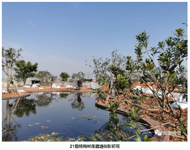 另外,在“雙童”新廠房樓頂魚塘邊,楊梅樹與黃桃樹的倒影初現(xiàn)。想象一下:等到果實豐收之時,一邊觀賞農(nóng)園風(fēng)光,一邊還能靜靜地釣一釣魚,嘗嘗鮮美可口的果實,這簡直是生活的詩和遠(yuǎn)方。