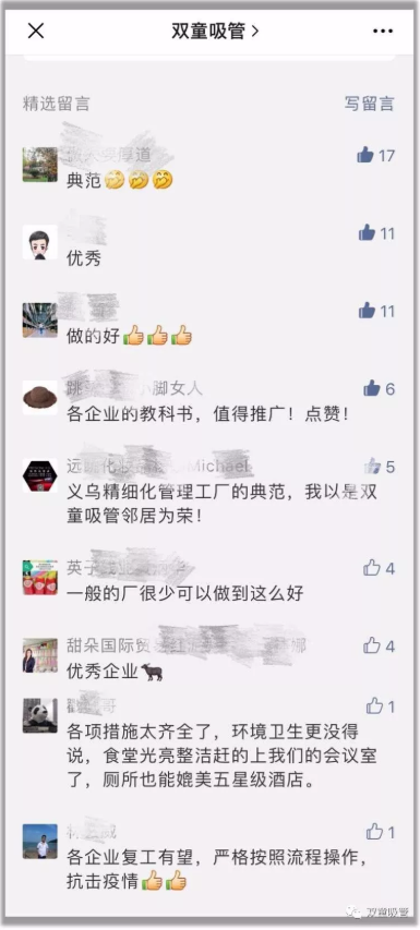 此篇文章發(fā)布后不僅引發(fā)了社會(huì)極大關(guān)注,很多企業(yè)也紛紛聯(lián)系吸管妞想借鑒“雙童”的復(fù)工文件進(jìn)行參考?;诟鞔笃髽I(yè)的需求,“雙童”復(fù)工防疫流程文件包將對(duì)企業(yè)進(jìn)行免費(fèi)分享!快添加吸管妞微信免費(fèi)領(lǐng)取吧!