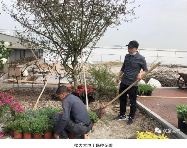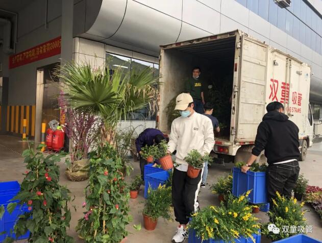 就在前兩天,“雙童”樓仲平采購的一大批花卉到啦! “雙童”的男同胞們都化身大力士,將一棵棵花卉搬上了屋頂按位置擺放。