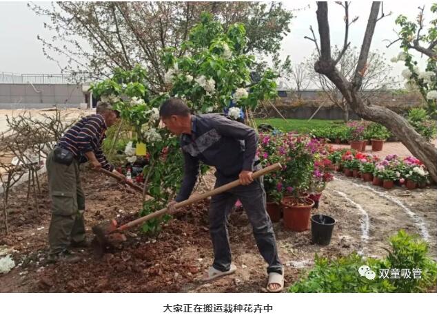 園藝師們將一棵棵花卉栽種到花池中,樓大大更是變成了設(shè)計師,親自上場布置花卉,拿起鏟子十分像樣呢!