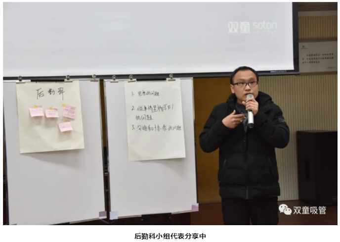 此外,二車間小組代表還表示,自己剛到公司不久,會帶著一些不一樣的管理思維與“雙童”的現(xiàn)有的管理思維發(fā)生碰撞,產(chǎn)生一些新的東西。同時,他還希望大家能夠有一種開放包容的心態(tài),多多接受一些來自外部的新思維、新方法,從而形成一種適合“雙童”的全新的管理方法。