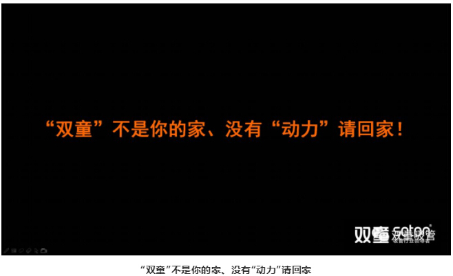 所以,“雙童”在倡導(dǎo)家文化的同時,提出了“雙童不是我的家”觀點,提倡“以奮斗者為本”,以此來提升組織效率!