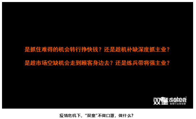 那么,既然不做口罩,“雙童”要通過怎樣的方式來渡過這次危機(jī),從而讓自己活下去的呢?