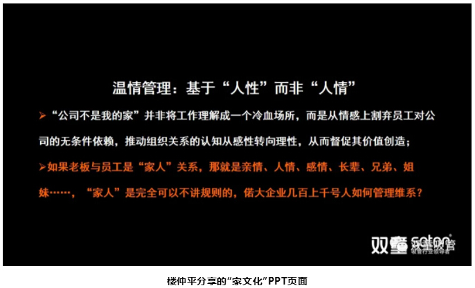 正是由于這種文化的深遠影響,很多企業(yè)管理者也將“家文化”融入到了企業(yè)經(jīng)營當(dāng)中,認為公司是一個大家庭,把員工都當(dāng)作兄弟姐妹,一開口就是“家人”、“親人”、“兄弟姐妹”……并認為唯有“自家人”才能把工作做好。